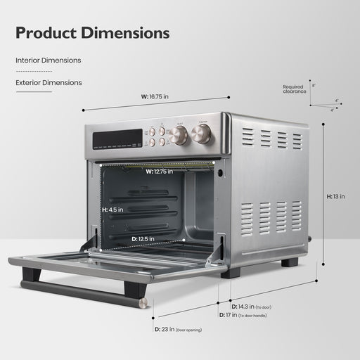 With a spacious 30L/31.7Qt interior, this oven easily fits a 12" pizza, 6.6 lb whole chicken, or a full family tray of vegetables—all without crowding your counter.